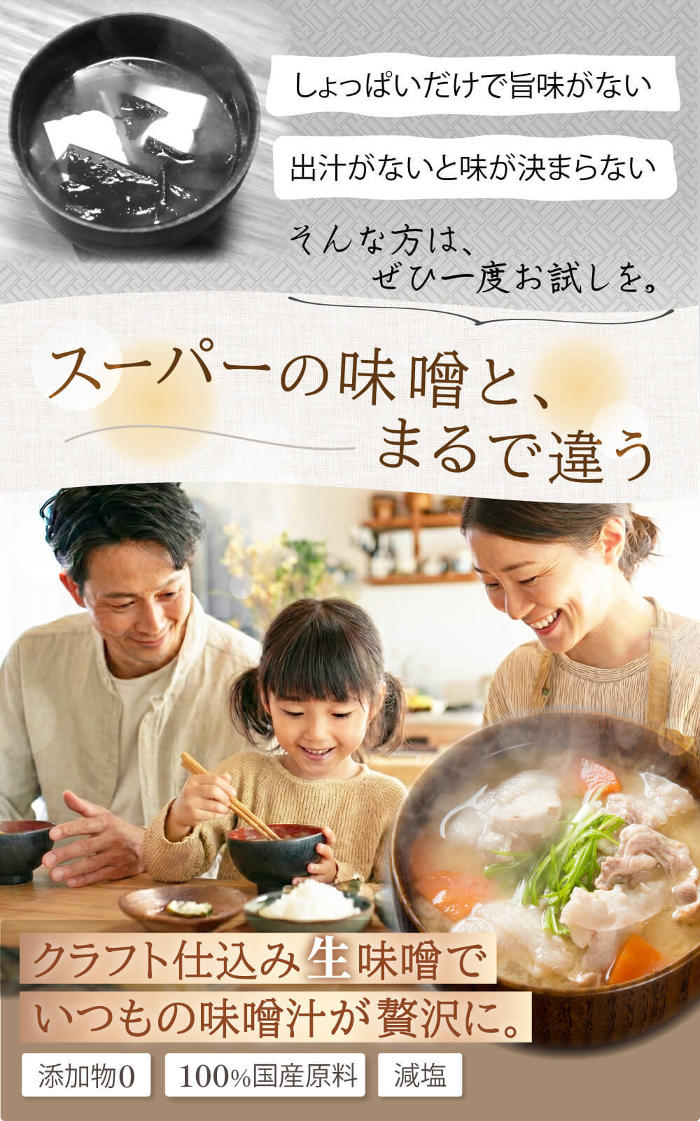 味噌汁・豚汁・鍋はもちろん、野菜のディップ、肉や魚の漬け込み、ドレッシングにもおすすめです。